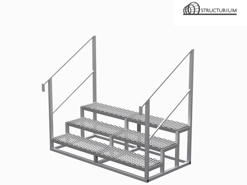 Каркас лестницы выполнен из профильной трубы 40х40 и уголка 40х4 Покрытие ступеней – просечно-вытяжной лист 4мм (может быть заменен на другое покрытие по желанию заказчика) Покраска полимерная порошковая с предварительным нанесением цинкосодержащего грунта.